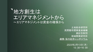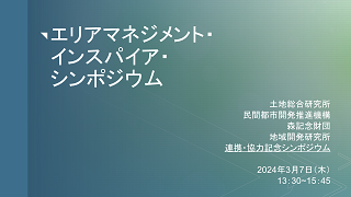 エリアマネジメントに関する調査研究 各研究機関の強みを生かした調査研究を進める予定です。 |